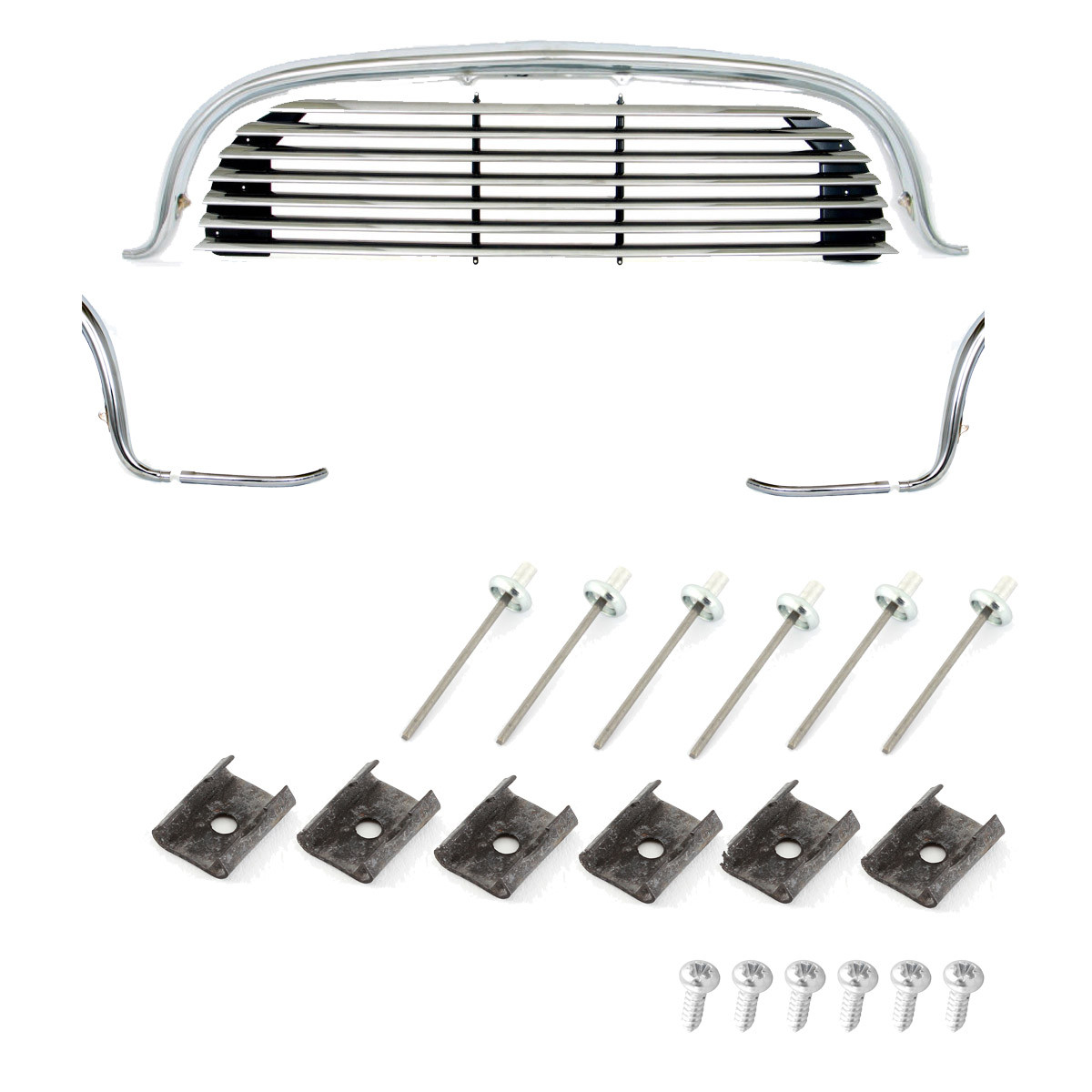 Convient également aux véhicules à partir de 1969, il est possible de monter cette calandre sur les modèles plus récent, en supprimant sur le capot le support de baguette