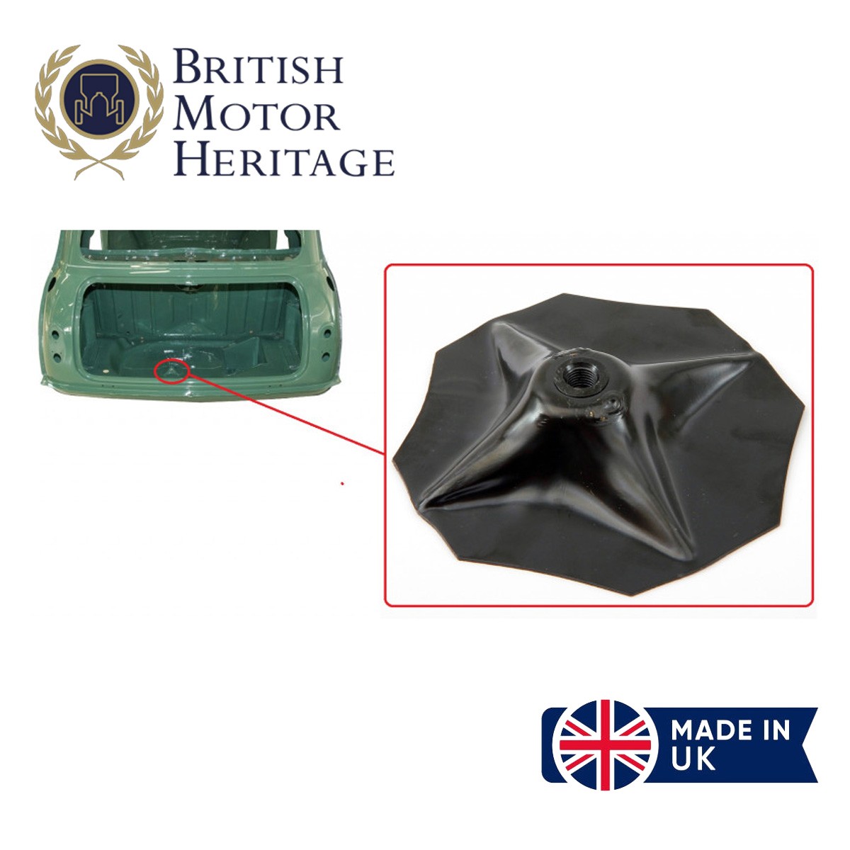 Pièce à souder dans le fond de coffre de la mini pour fixer la roue de secours dans le coffre