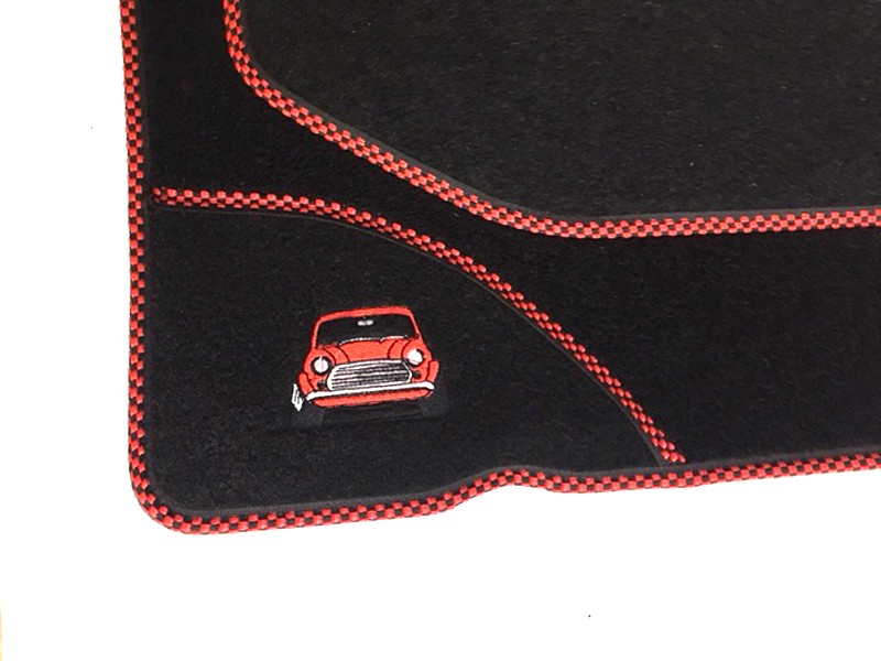 Jeu de 4 tapis de sol (2 avants et 2 arrières), noir avec liseré rouge et noir et Mini Brodée